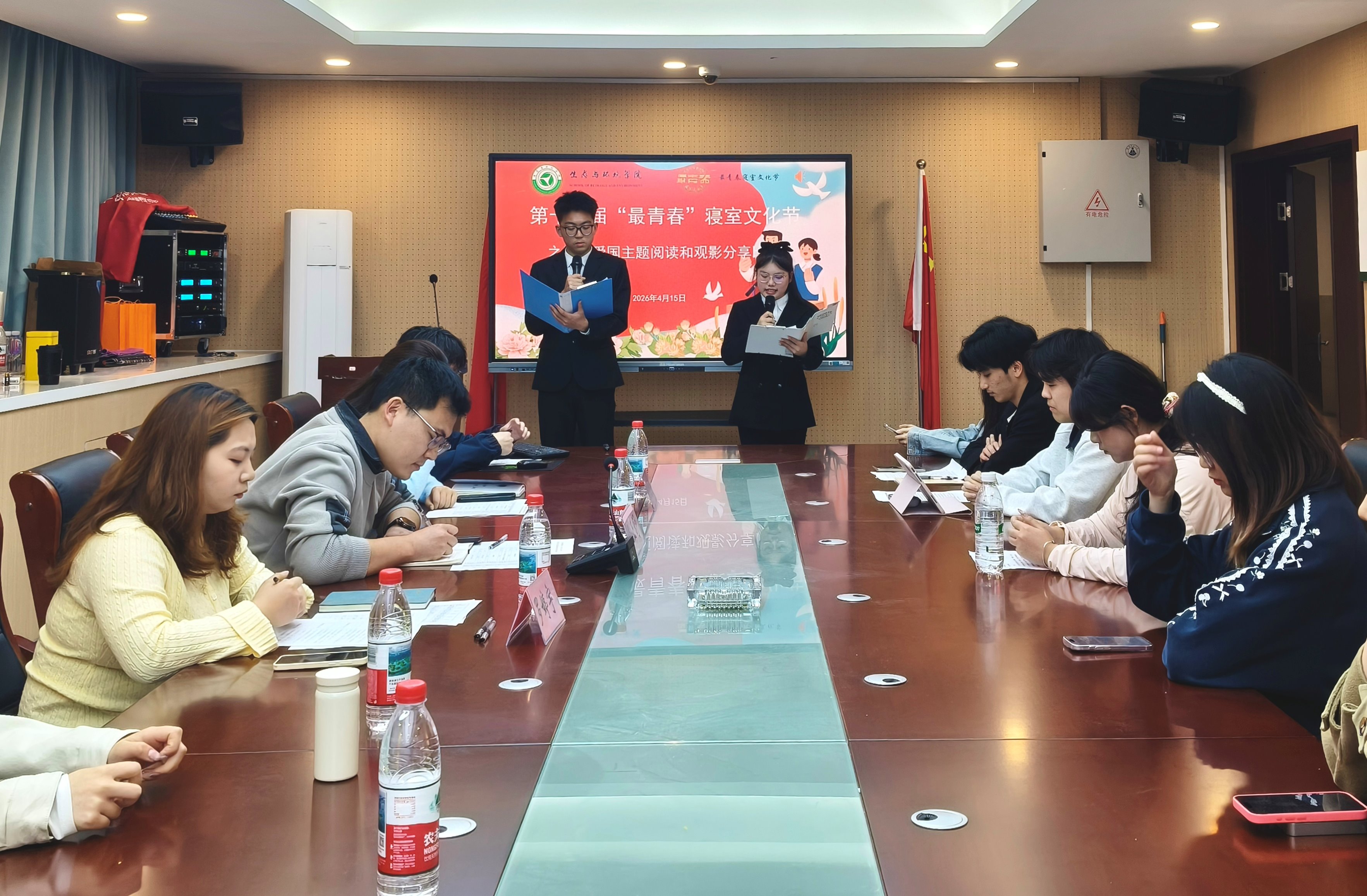 4月15日,生态与环境学院于清源楼B305会议室举办第十二届“最青春”寝室文化节之爱党爱国主题观影阅读分享比赛。学院团委书记屈亚舒,2025级辅导员罗婷宇、孙苗苗出席活动并担任评委,来自13个寝室的16名选手及其室友共同参与本次活动。